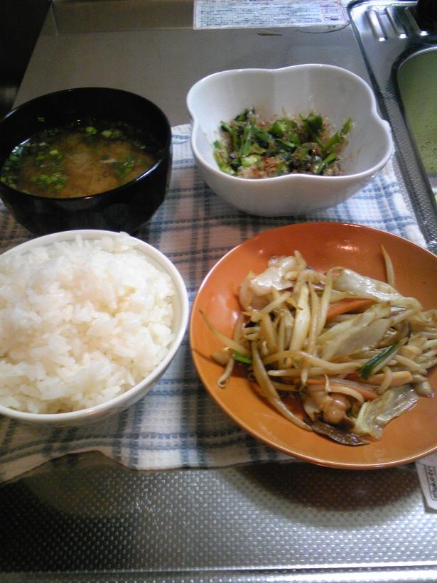 野菜炒めと、ほうれん草のお浸しにオクラをぶち込んだ物。