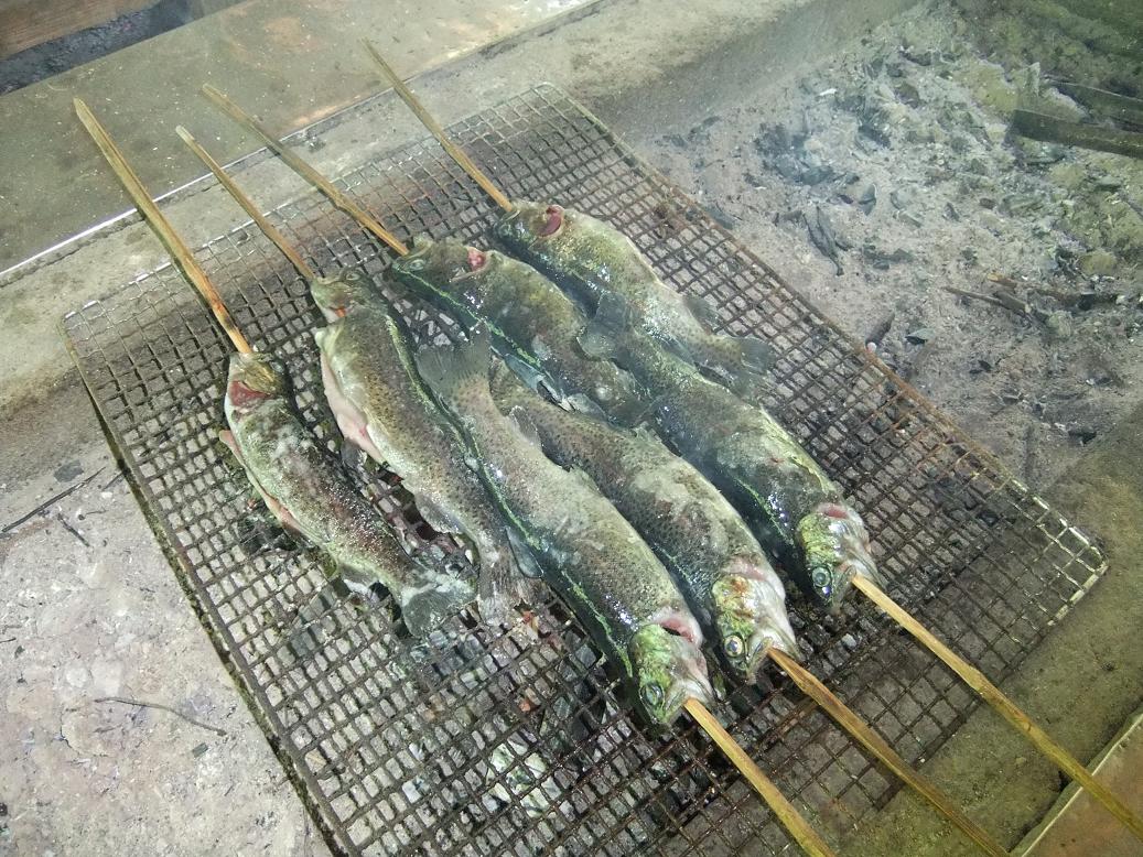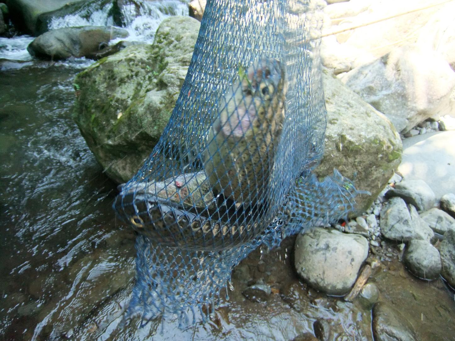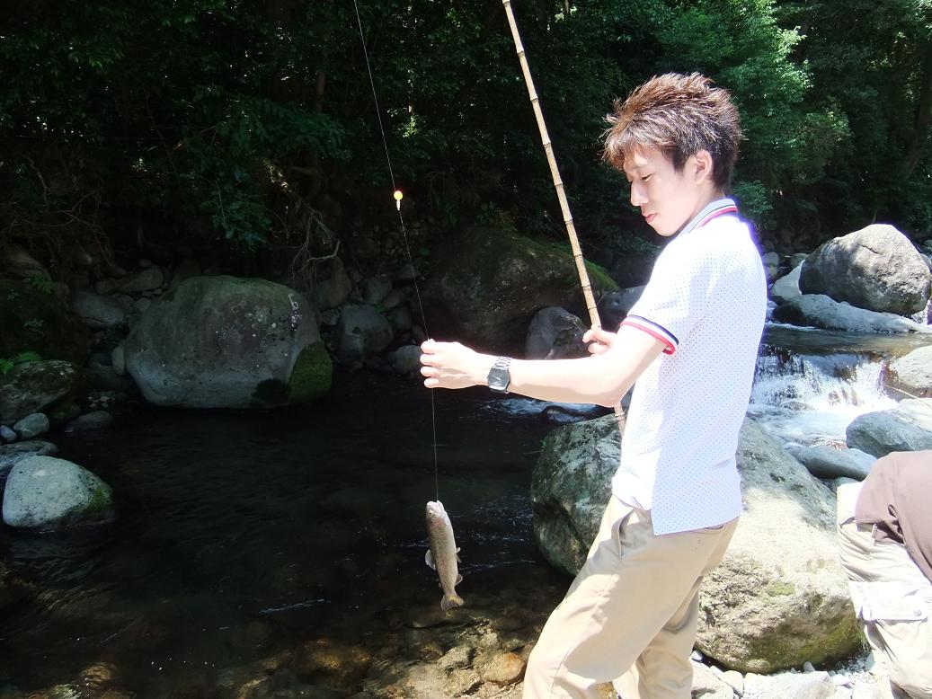 管理釣堀での渓流ニジマス釣り。